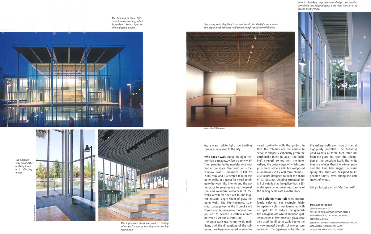 山形県鶴岡市の城址公園に建つ美術館。基本設計まで担当させていただきました。鶴岡市にはこの美術館の計画前段の城址公園の景観整備や大学誘致検討報告書など前職で5年から6年くらいは携わっていて鶴岡市役所の企画調整課や建設課の方には大変お世話になっていました。基本設計は前職で最後に携わった仕事で9年ほど勤めて身についた実務経験の総決算でもありましたし、長年鶴岡市に携わっていた関係もあって鶴岡の歴史、文化、都市構造、そして市民の文化活動に事務所も個人も精通していたこともあって、この美術館のデザインにはそれがよく結実し大変良くできていると自負しています。この建物表彰については基本設計以降、引き継いでくれた事務所の人達と関係者の努力の賜物であると思います、おめでとうございます。