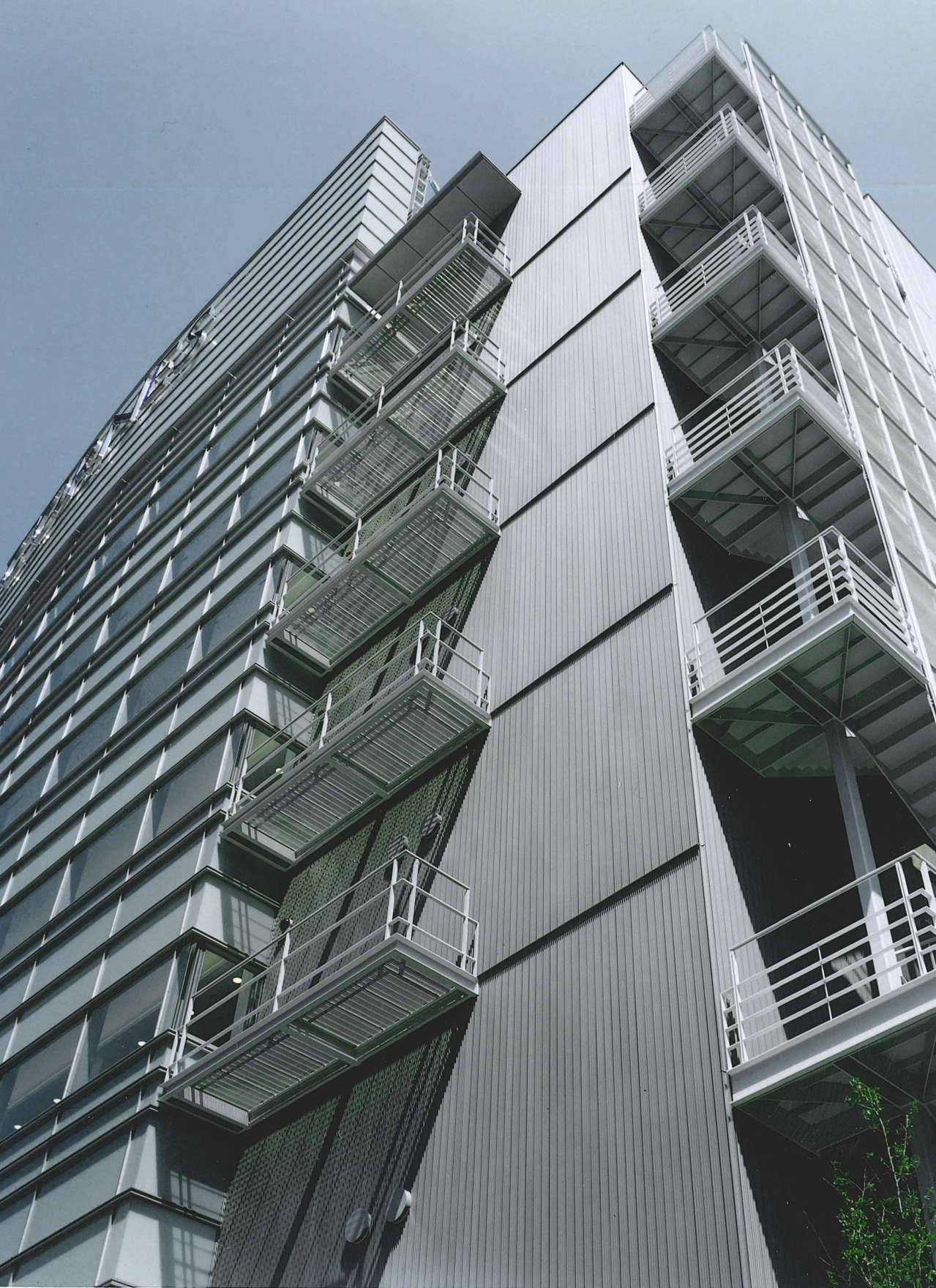 東京都港区に建つコーンズ社の東京本社ビル、小沢明建築研究室在職時30才の時に担当。事務所、ショウルーム、サービス工場、付置住宅と4種類の異種用途が複合していることに加え、3層に渡って出入り口のある特注仕様となるエレベータパーキングをコア部分に組込み、施工中にその消火システムの消防評定を受けるなど、設計、法的手続き、施工まですべてに渡って複雑で困難な作業の連続であった。施主、設計、施工チームの力によって設計着手から竣工までわずか1年8ヶ月というギネス級の超ハイスピードでこのプロジェクトは竣工しました。